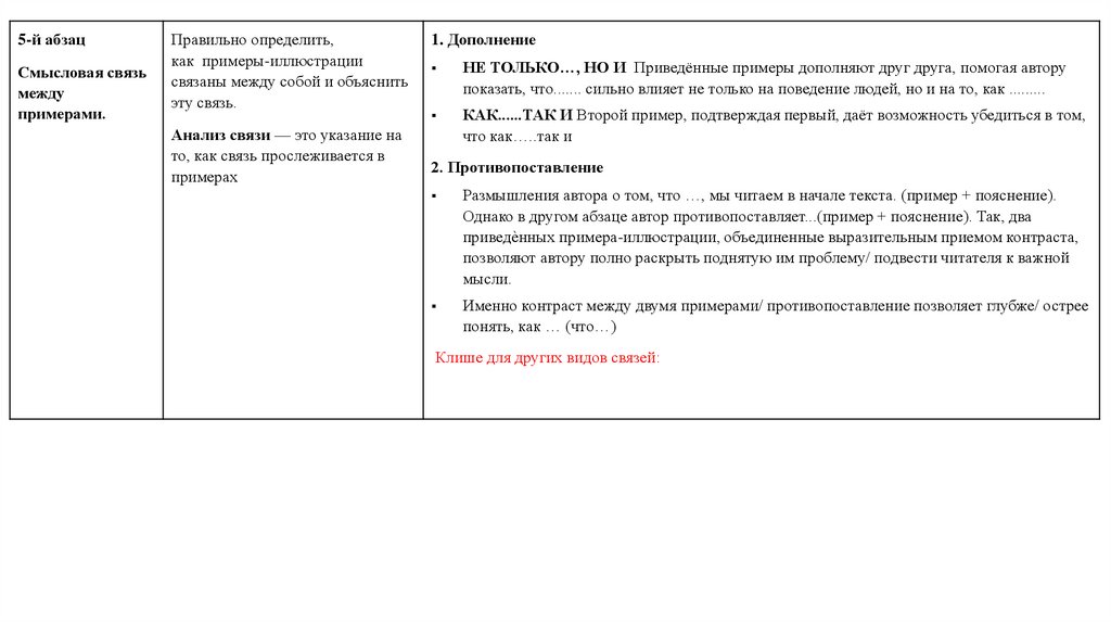 Анализ смысловой связи между примерами