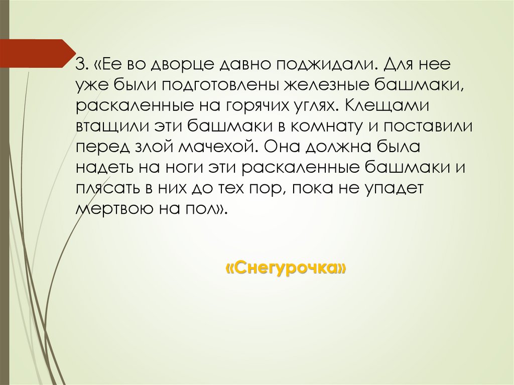 3. «Ее во дворце давно поджидали. Для нееуже были подготовлены железные башмаки,