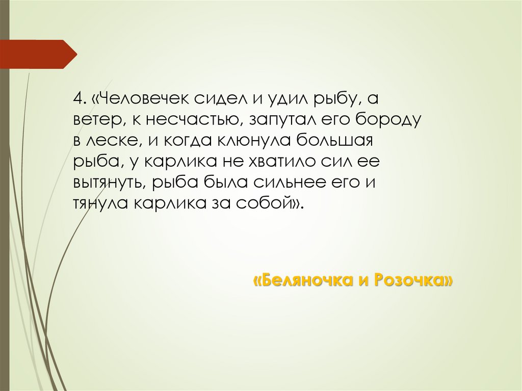 4. «Человечек сидел и удил рыбу, аветер, к несчастью, запутал его бороду
