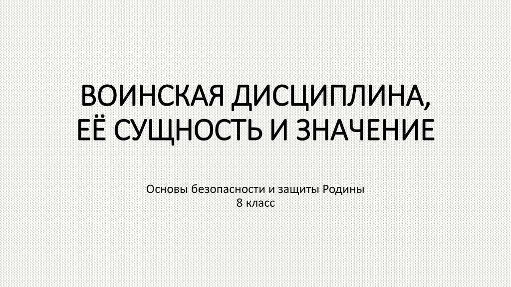 ВОИНСКАЯ ДИСЦИПЛИНА,ЕЁ СУЩНОСТЬ И ЗНАЧЕНИЕ