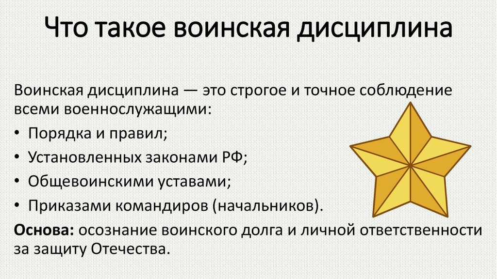 Что такое воинская дисциплинаВоинская дисциплина — это строгое и точное соблюдение
