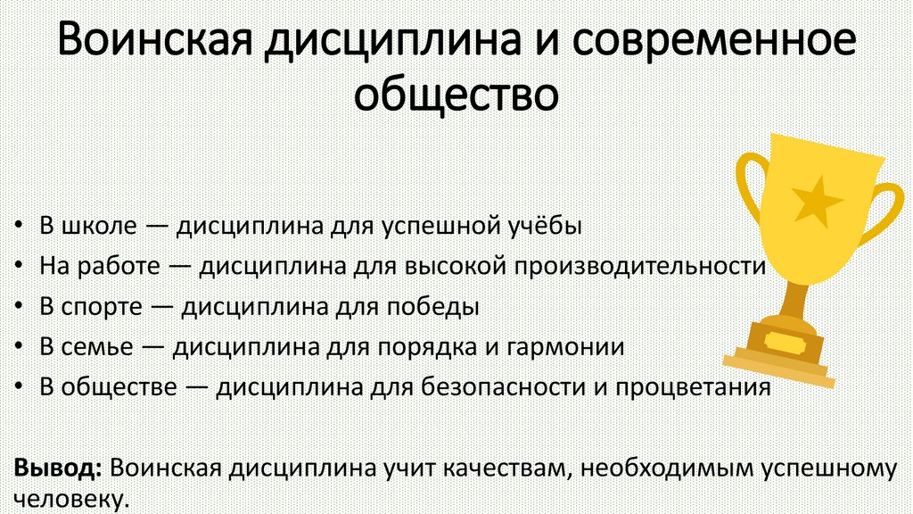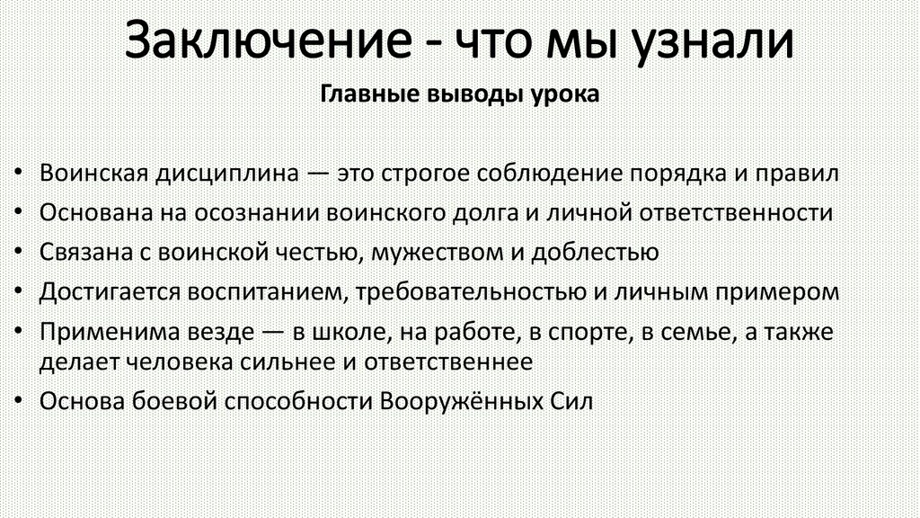 Вывод: Воинская дисциплина учит качествам, необходимым успешному