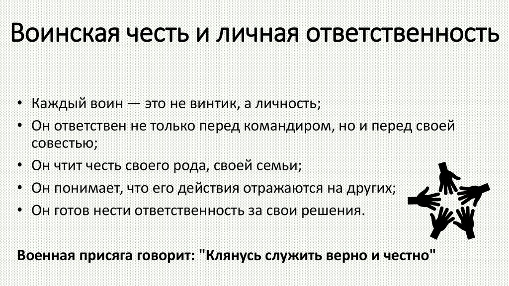 Воинская честь и личная ответственность• Каждый воин — это не винтик, а личность;