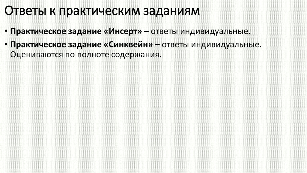 Ответы к практическим заданиям• Практическое задание «Инсерт» – ответы индивидуальные.