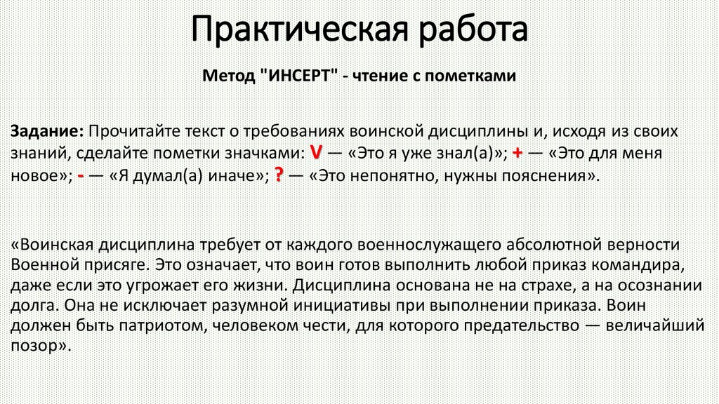 Практическая работаМетод "ИНСЕРТ" - чтение с пометками