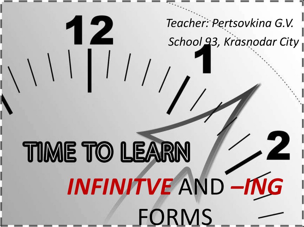 1. Teacher: Pertsovkina G.V. School 93, Krasnodar City INFINITVE AND –ING FORMS