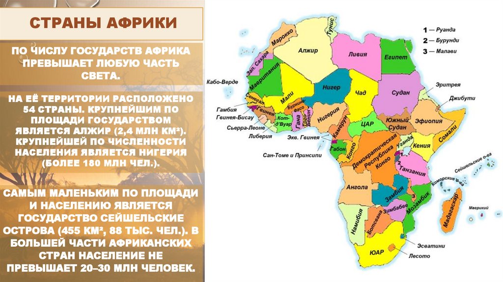 СТРАНЫ АФРИКИПО ЧИСЛУ ГОСУДАРСТВ АФРИКА