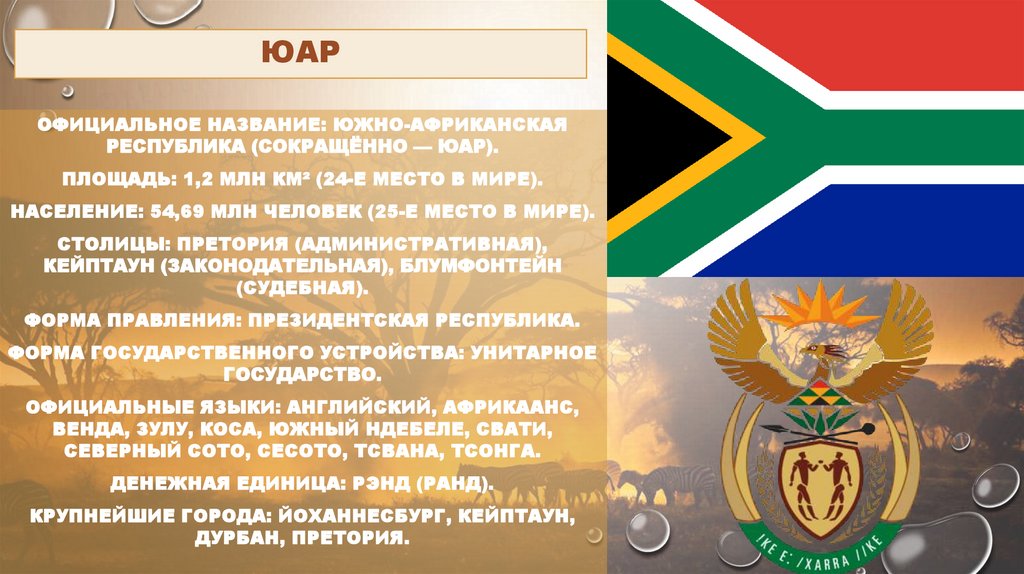ЮАРОФИЦИАЛЬНОЕ НАЗВАНИЕ: ЮЖНО-АФРИКАНСКАЯ