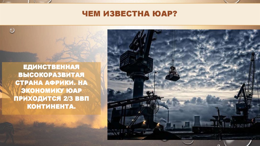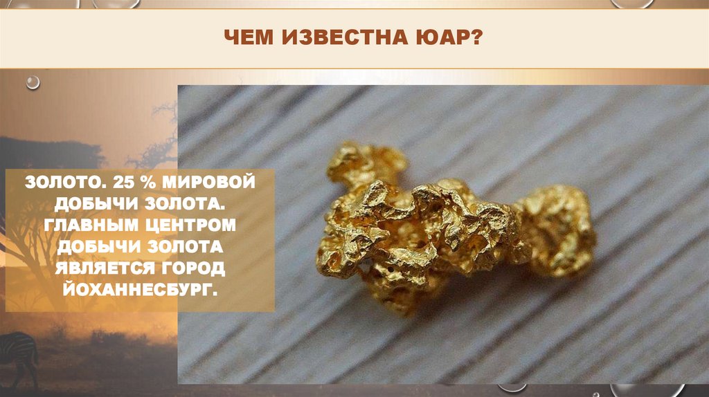 ЧЕМ ИЗВЕСТНА ЮАР?ЗОЛОТО. 25 % МИРОВОЙ