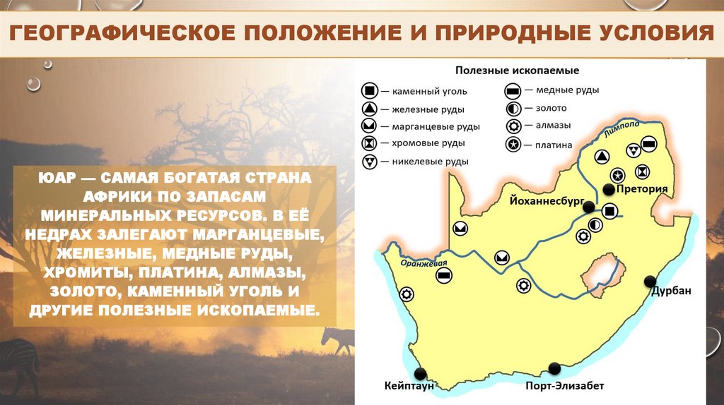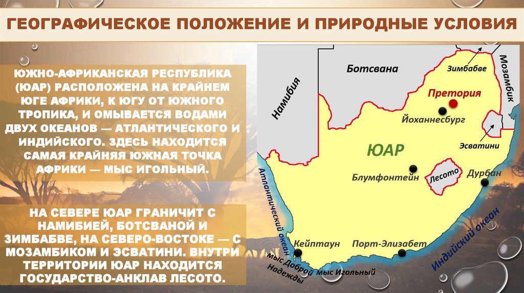 ГЕОГРАФИЧЕСКОЕ ПОЛОЖЕНИЕ И ПРИРОДНЫЕ УСЛОВИЯЮЖНО-АФРИКАНСКАЯ РЕСПУБЛИКА
