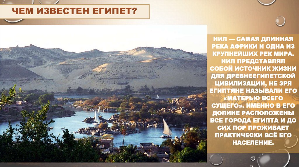 ЧЕМ ИЗВЕСТЕН ЕГИПЕТ?НИЛ — САМАЯ ДЛИННАЯ