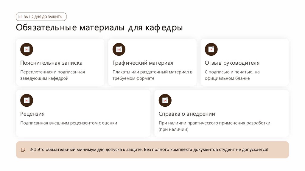 ⚠ Это обязательный минимум для допуска к защите. Без полного комплекта документов студент не допускается!