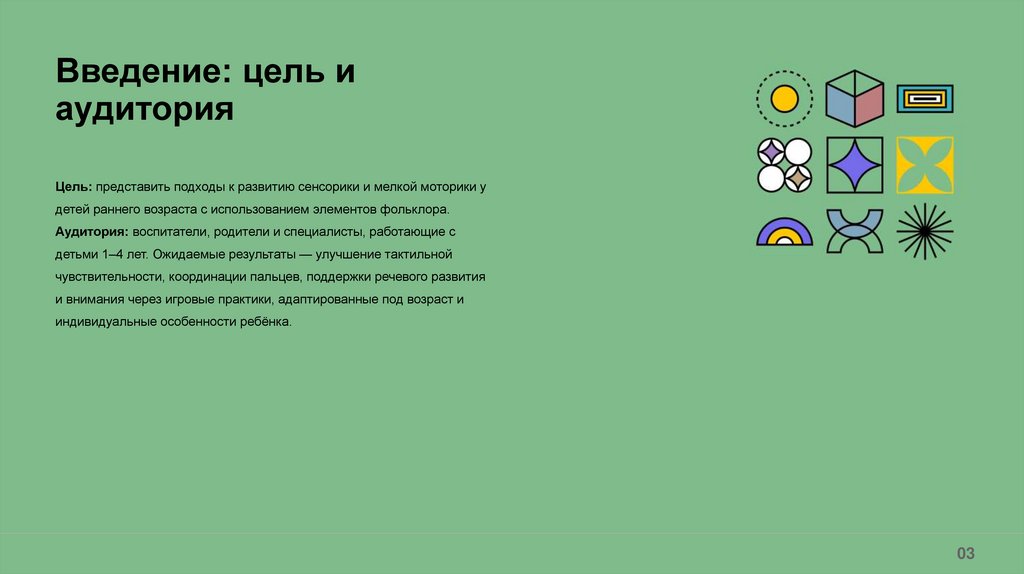 Цель: представить подходы к развитию сенсорики и мелкой моторики у