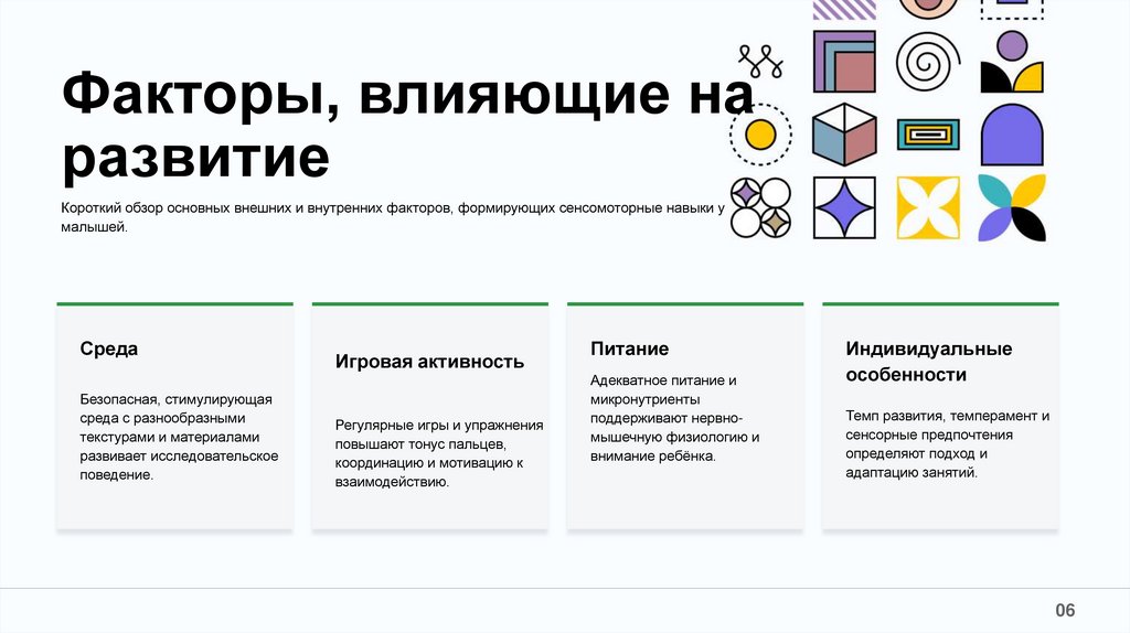 Короткий обзор основных внешних и внутренних факторов, формирующих сенсомоторные навыки у