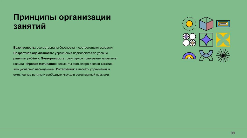 Принципы организации занятий