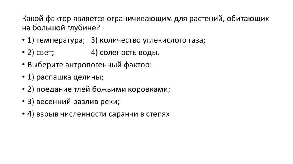 Какой фактор является ограничивающим для растений, обитающихна большой глубине?