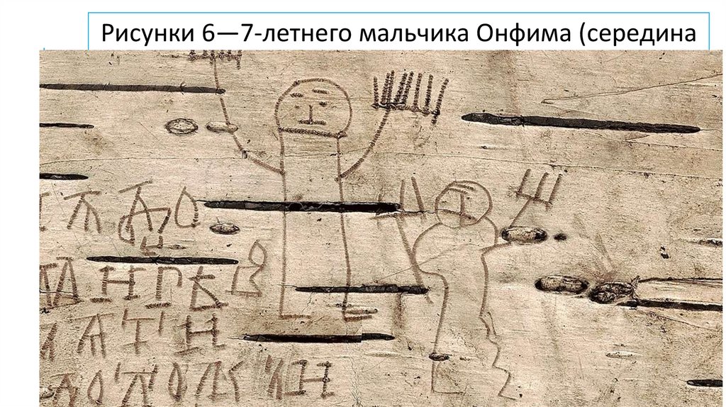 Рисунки 6—7-летнего мальчика Онфима (серединаXIII века), автора нескольких берестяных грамот