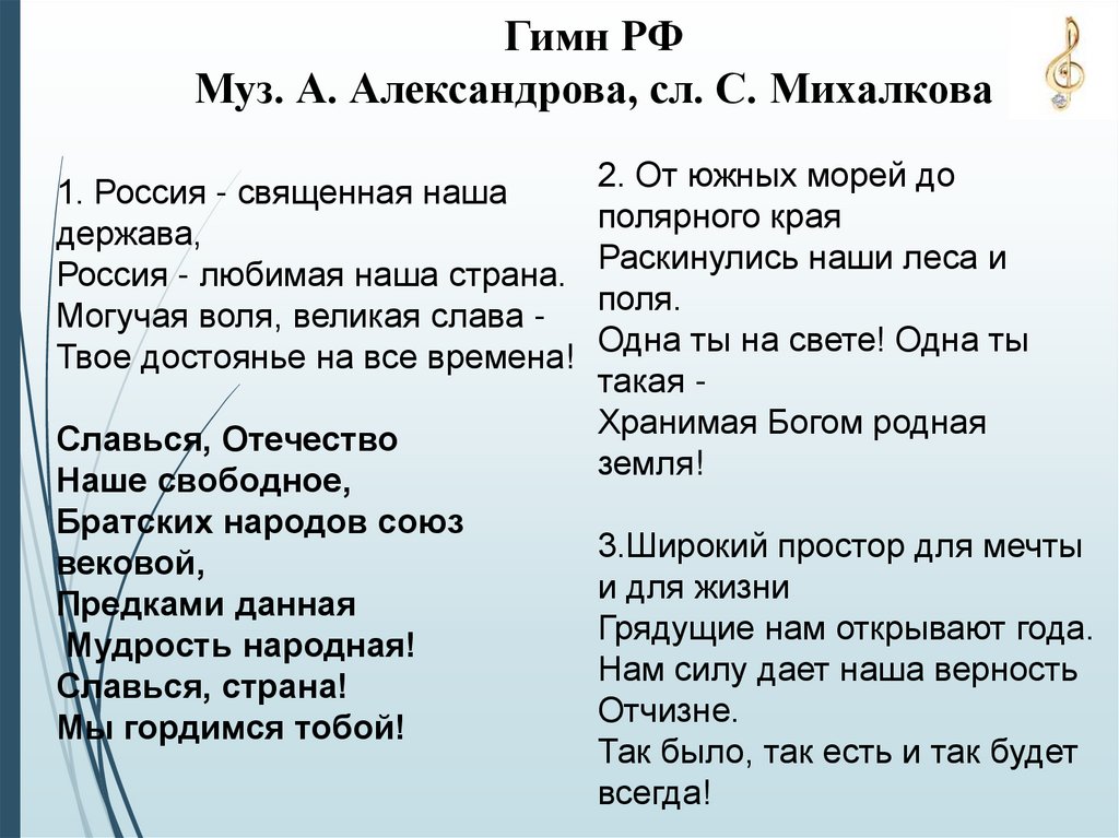 Гимн РФМуз. А. Александрова, сл. С. Михалкова
