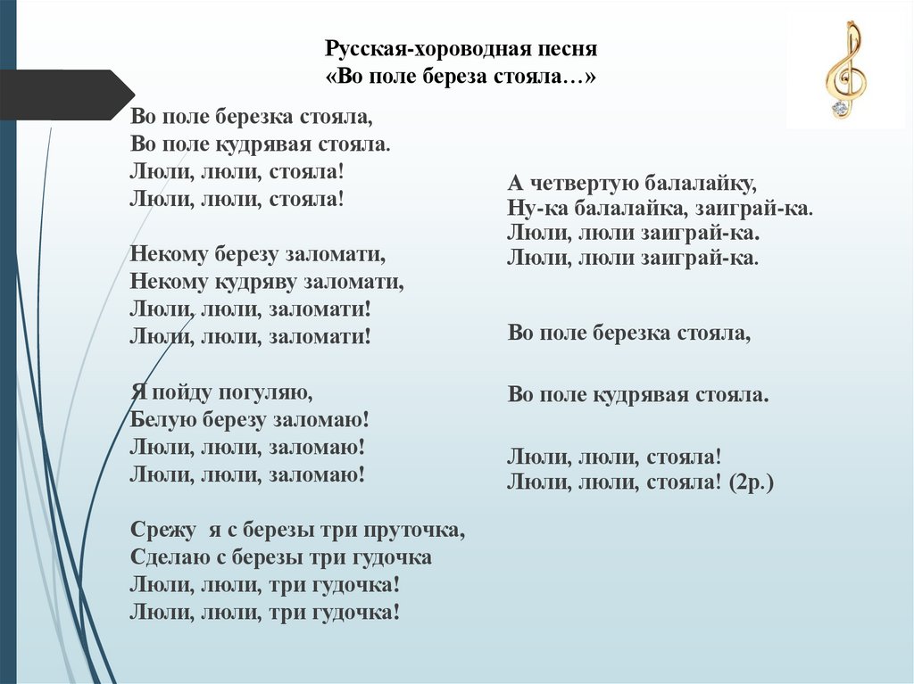 Русская-хороводная песня«Во поле береза стояла…»