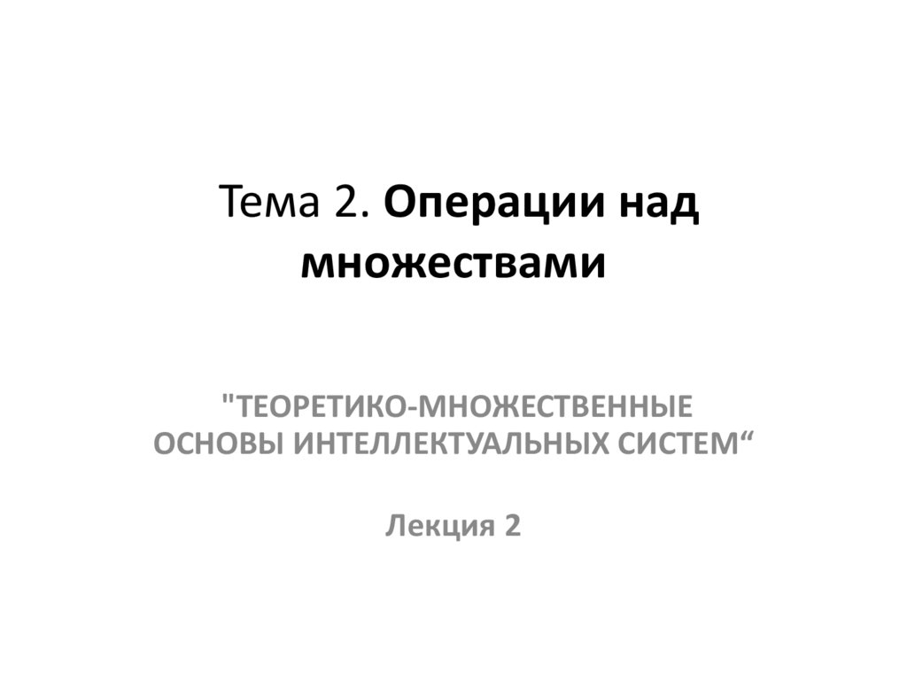 "ТЕОРЕТИКО-МНОЖЕСТВЕННЫЕОСНОВЫ ИНТЕЛЛЕКТУАЛЬНЫХ СИСТЕМ“
