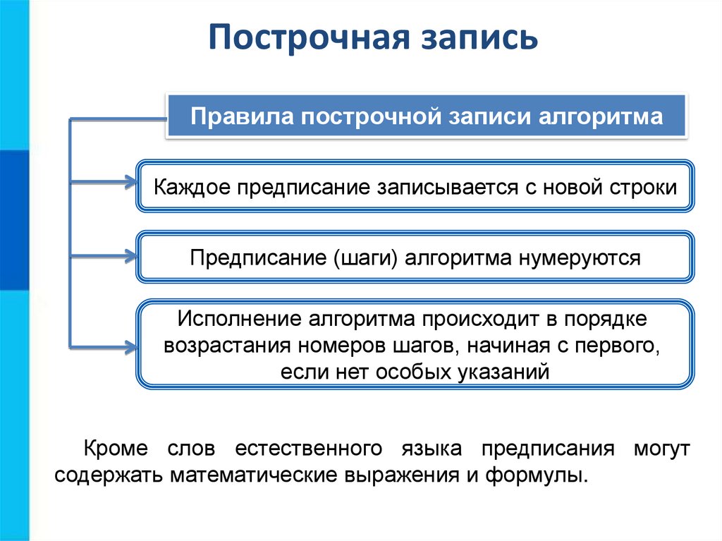 Построчная записьПравила построчной записи алгоритма