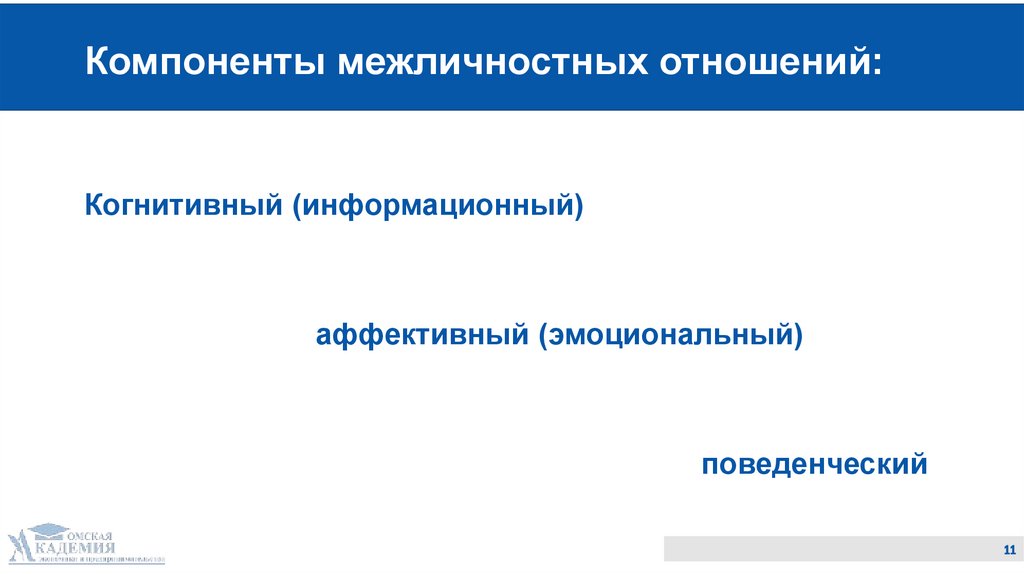 Компоненты межличностных отношений:Когнитивный (информационный)