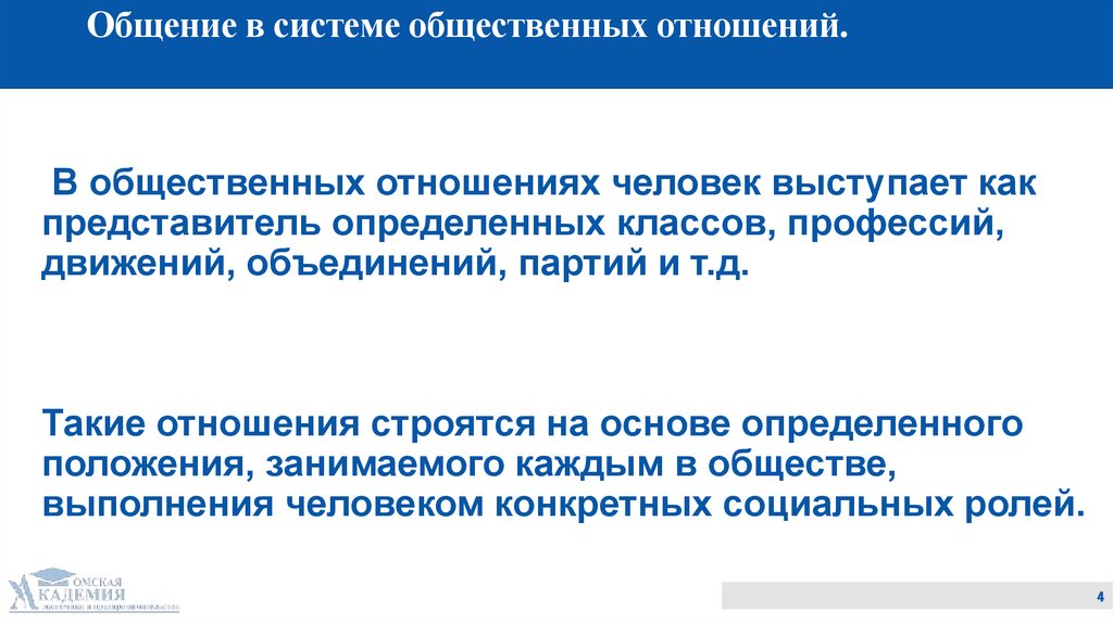 Общение в системе общественных отношений.В общественных отношениях человек выступает как
