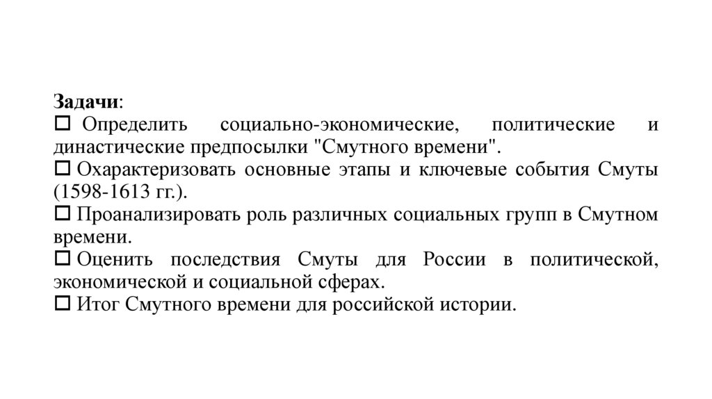 Постановка проблем: "Смутное время" ставит ряд сложныхпроблем, такие как: