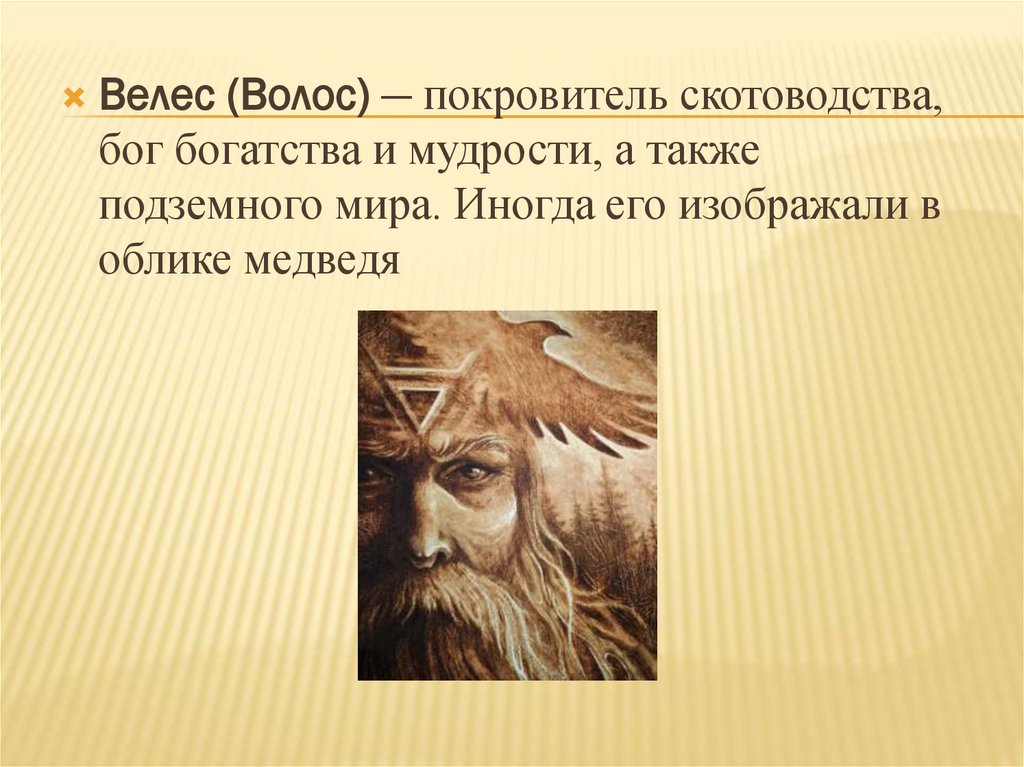 Велес (Волос) — покровитель скотоводства,бог богатства и мудрости, а также