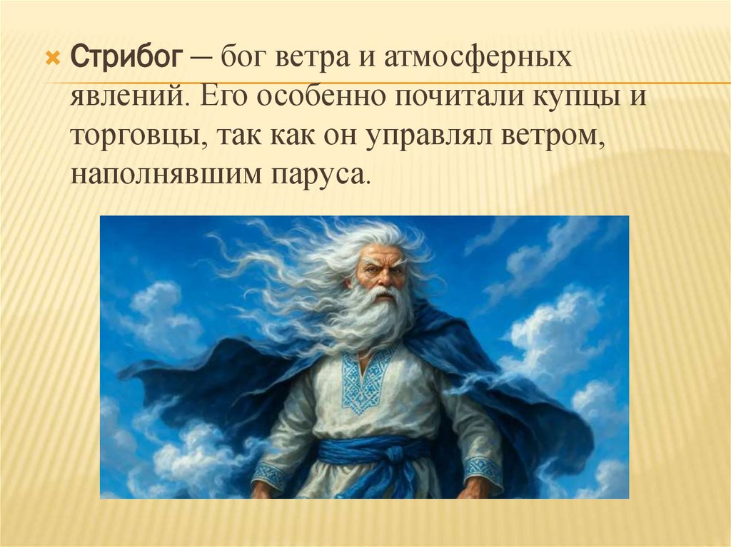 Стрибог — бог ветра и атмосферныхявлений. Его особенно почитали купцы и