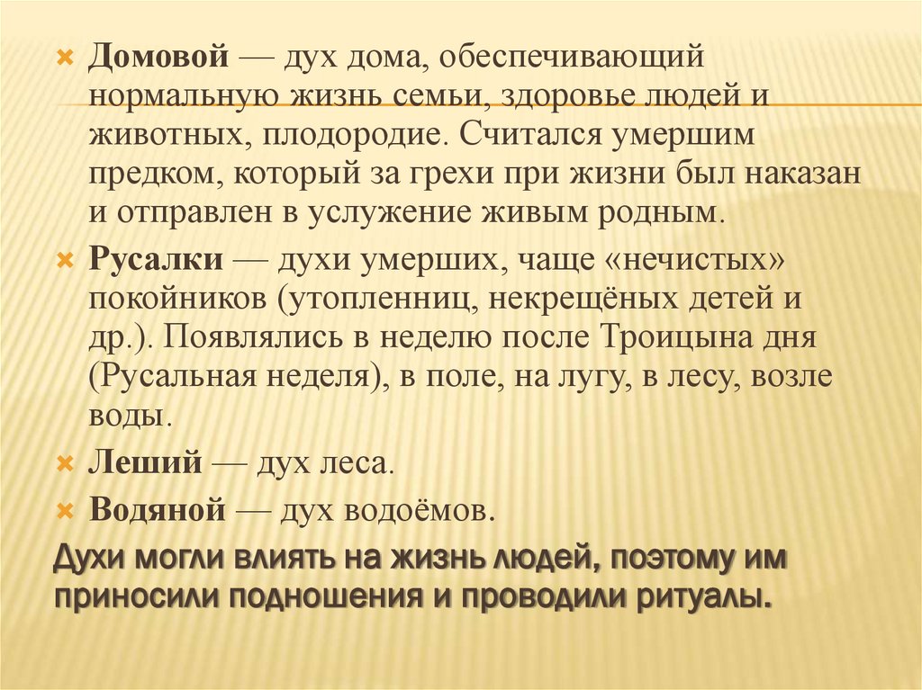 Домовой — дух дома, обеспечивающийнормальную жизнь семьи, здоровье людей и