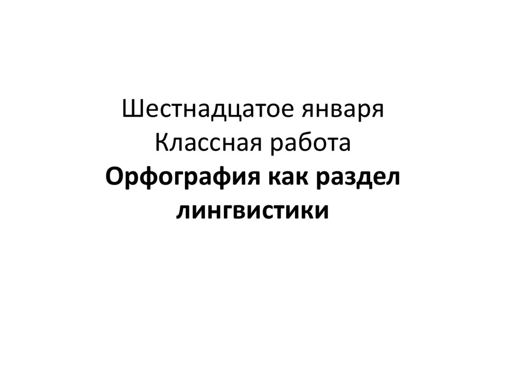 1. Шестнадцатое января Классная работа Орфография как раздел лингвистики