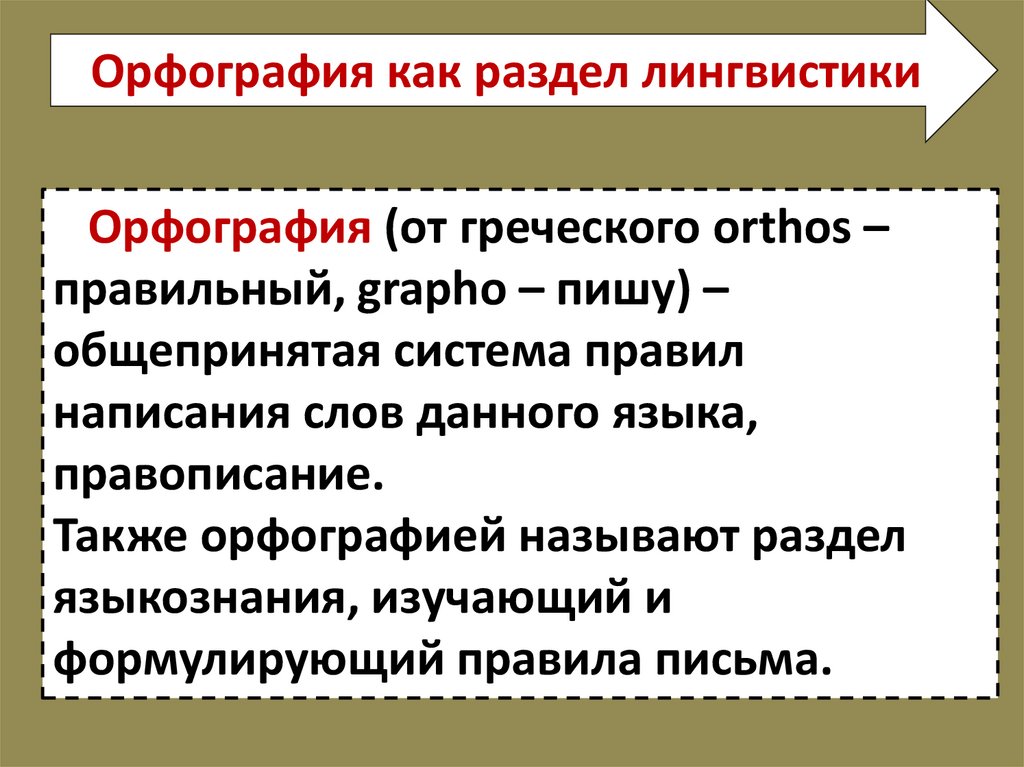 Орфография как раздел лингвистикиОрфография (от греческого orthos –