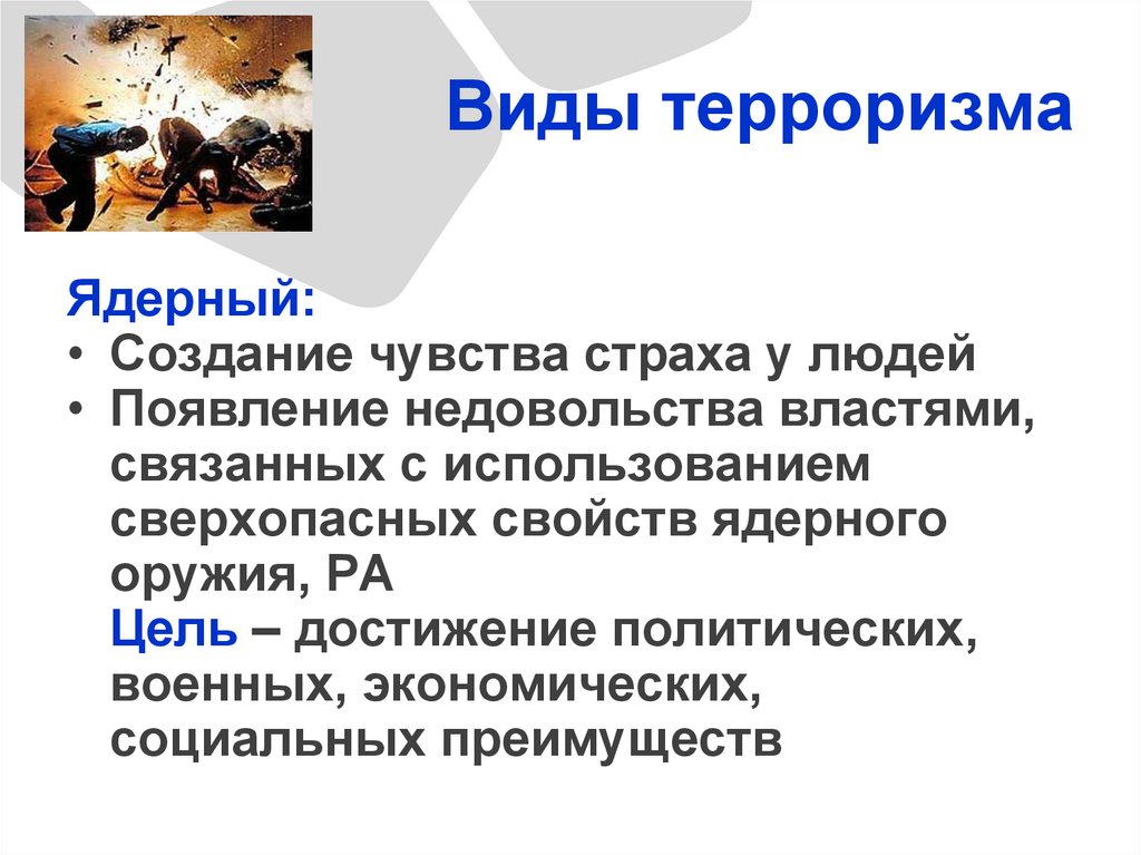 Виды терроризмаЯдерный: