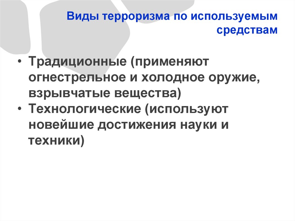 Виды терроризма по используемымсредствам