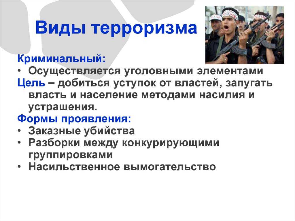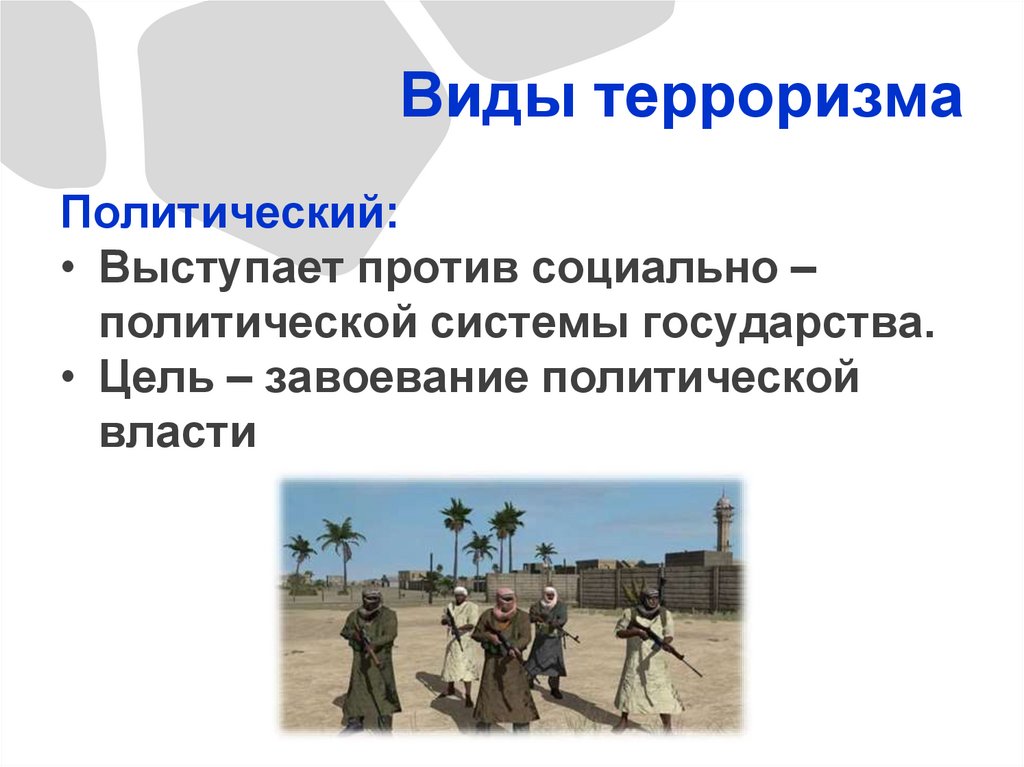 Виды терроризмаПолитический: