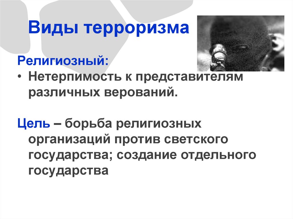 Виды терроризмаРелигиозный: