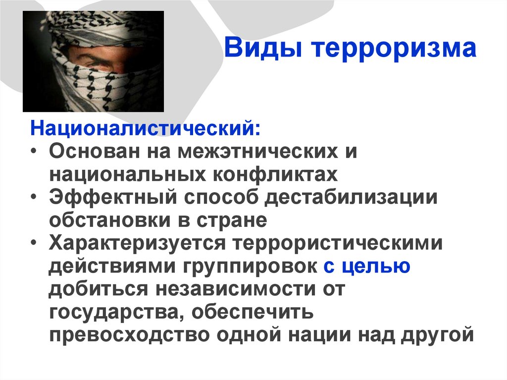 Виды терроризмаНационалистический: