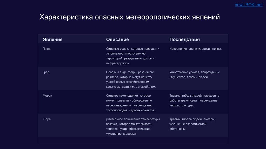 newUROKI.netХарактеристика опасных метеорологических явлений