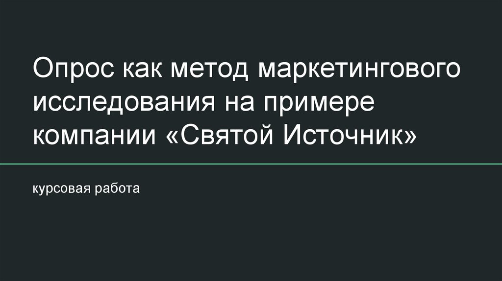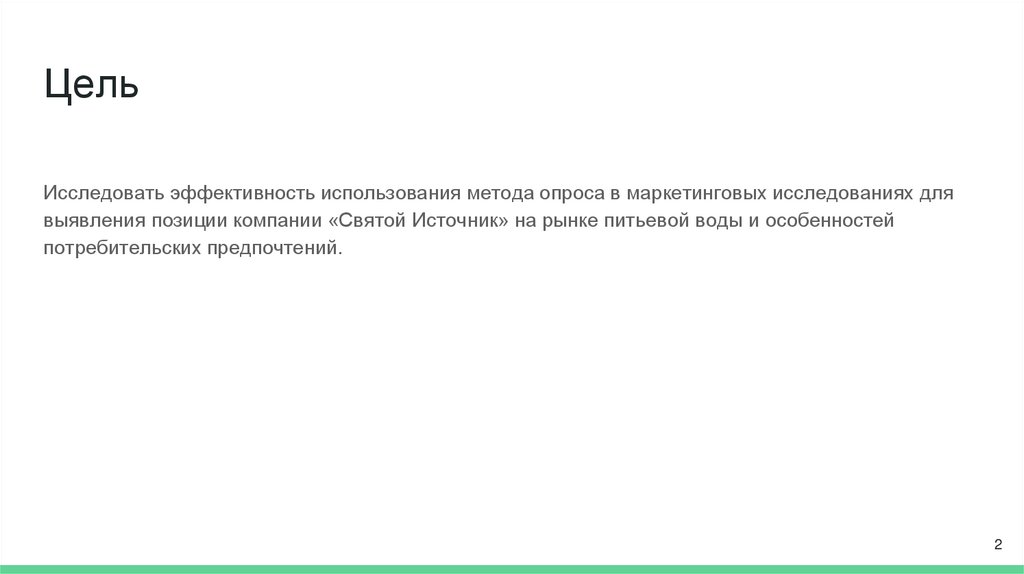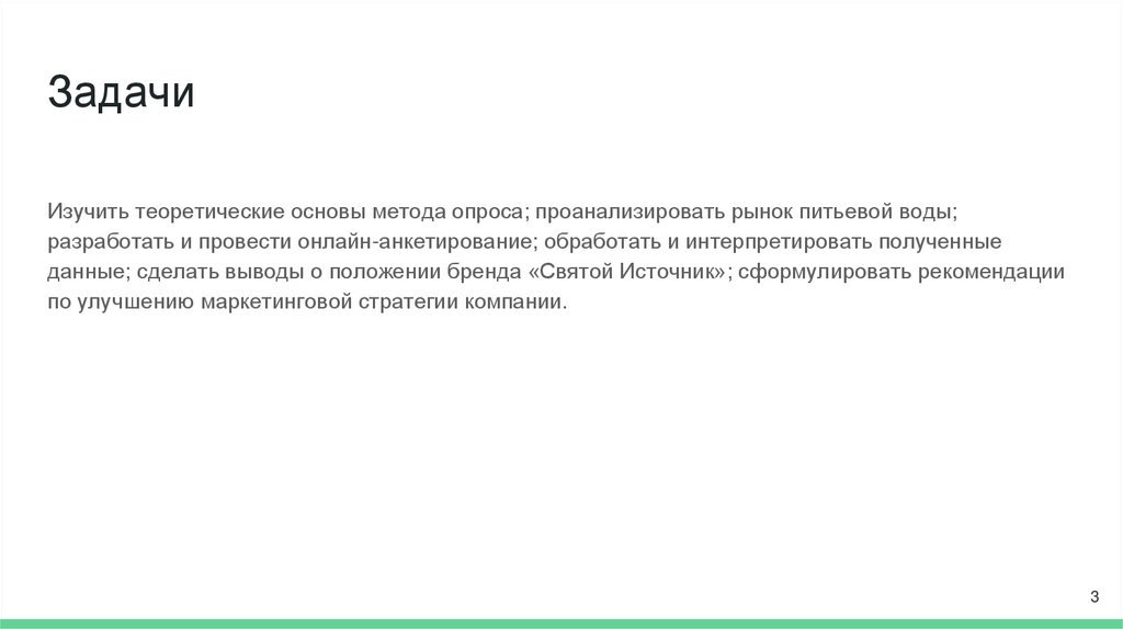 ЗадачиИзучить теоретические основы метода опроса; проанализировать рынок питьевой воды;