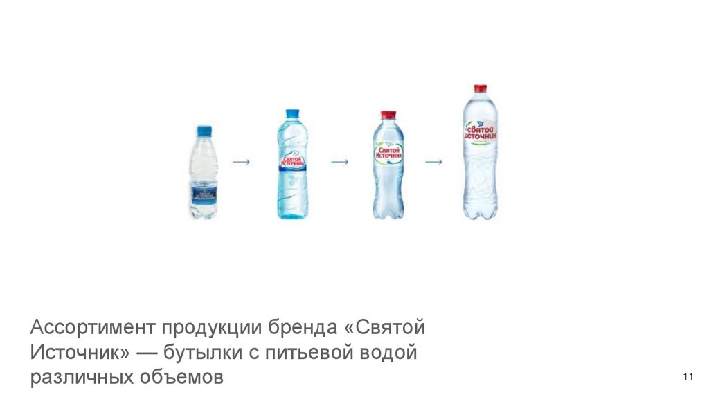 Ассортимент продукции бренда «СвятойИсточник» — бутылки с питьевой водой