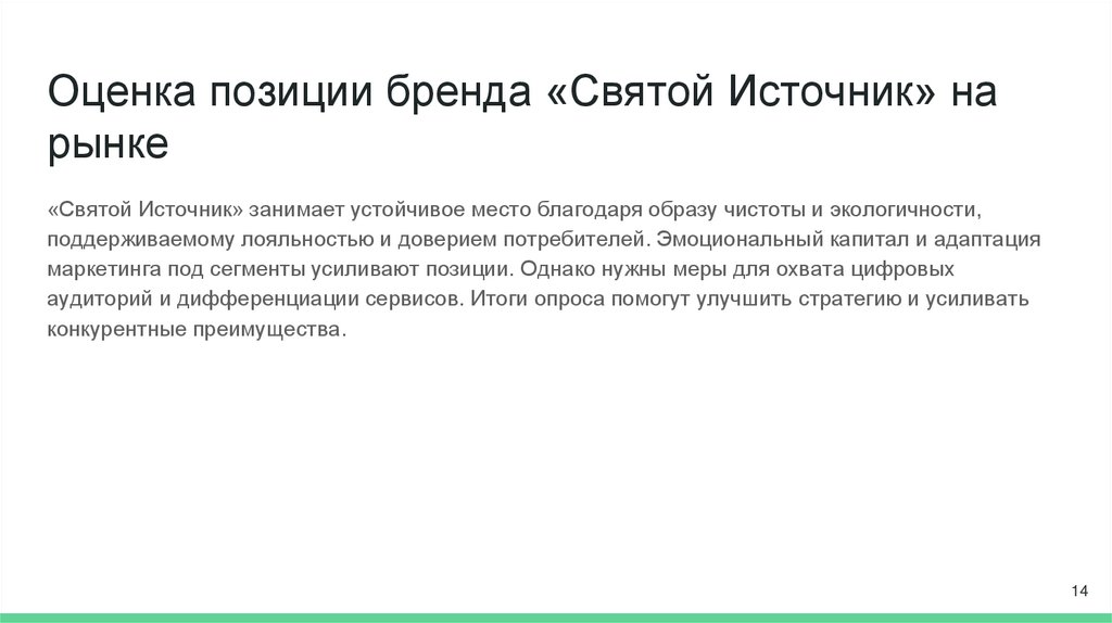 данные; сделать выводы о положении бренда «Святой Источник»; сформулировать рекомендации