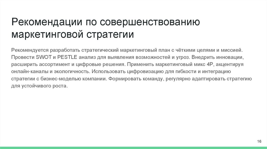 Рекомендации по совершенствованиюмаркетинговой стратегии