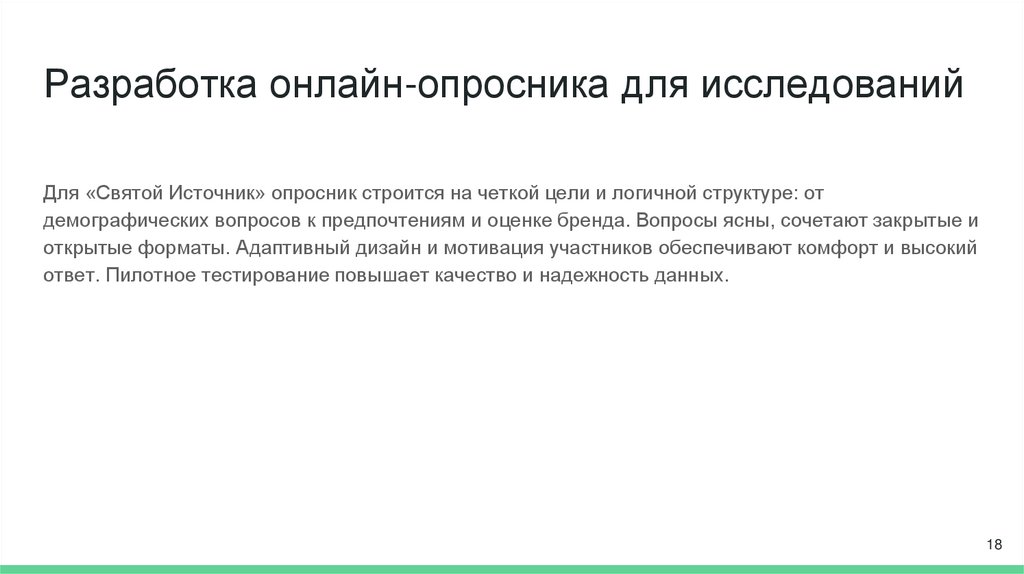 Разработка онлайн-опросника для исследованийДля «Святой Источник» опросник строится на четкой цели и логичной структуре: от