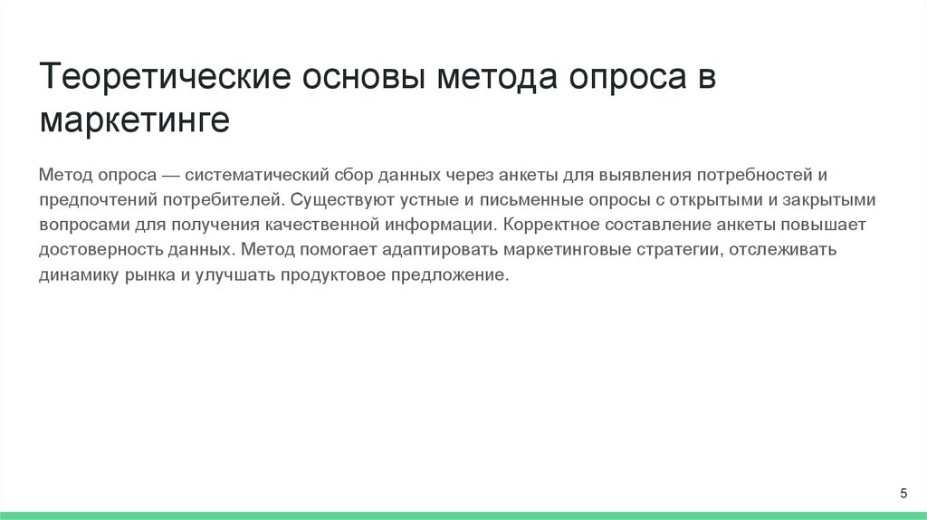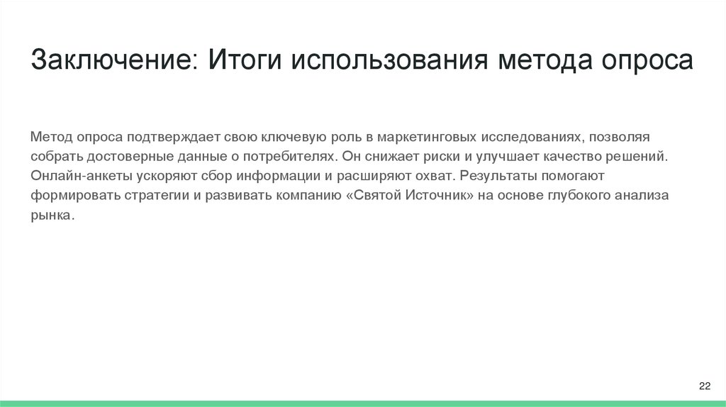 Заключение: Итоги использования метода опросаМетод опроса подтверждает свою ключевую роль в маркетинговых исследованиях, позволяя