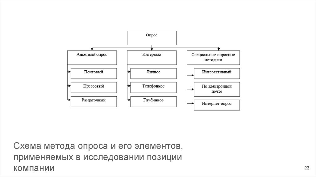 Схема метода опроса и его элементов,применяемых в исследовании позиции