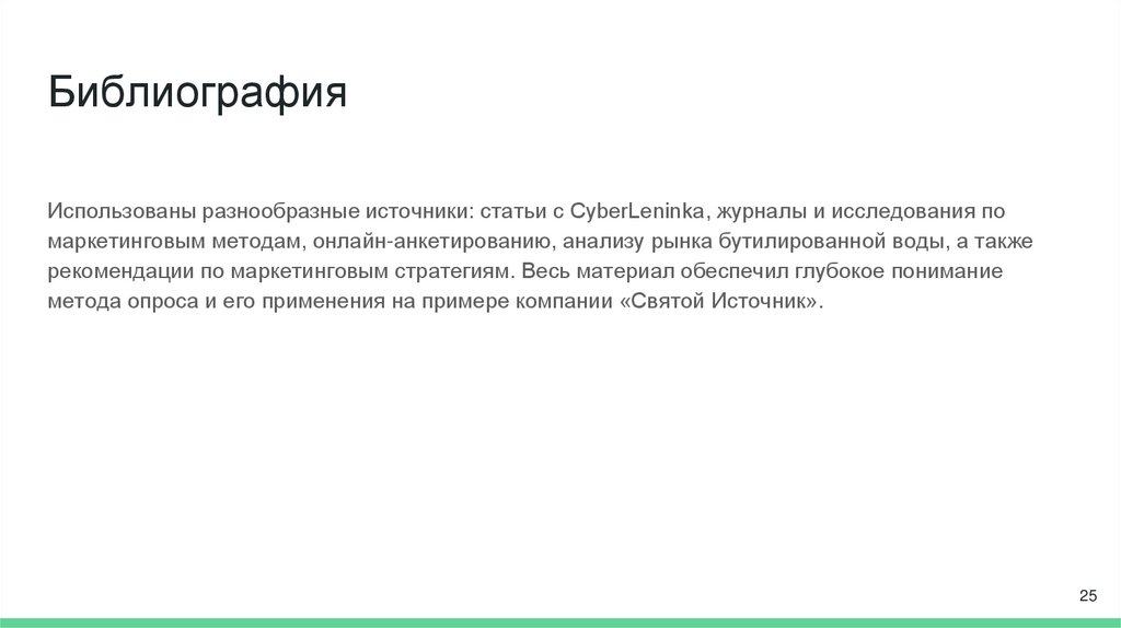 БиблиографияИспользованы разнообразные источники: статьи с CyberLeninka, журналы и исследования по
