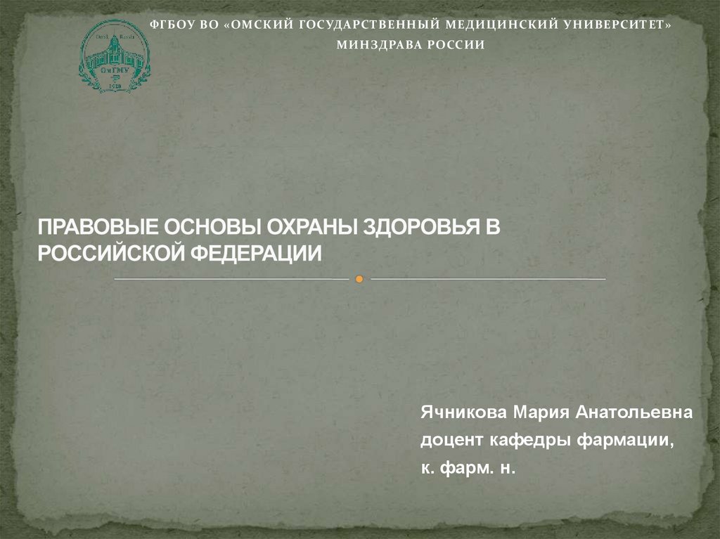 1. ПРАВОВЫЕ ОСНОВЫ ОХРАНЫ ЗДОРОВЬЯ В РОССИЙСКОЙ ФЕДЕРАЦИИ