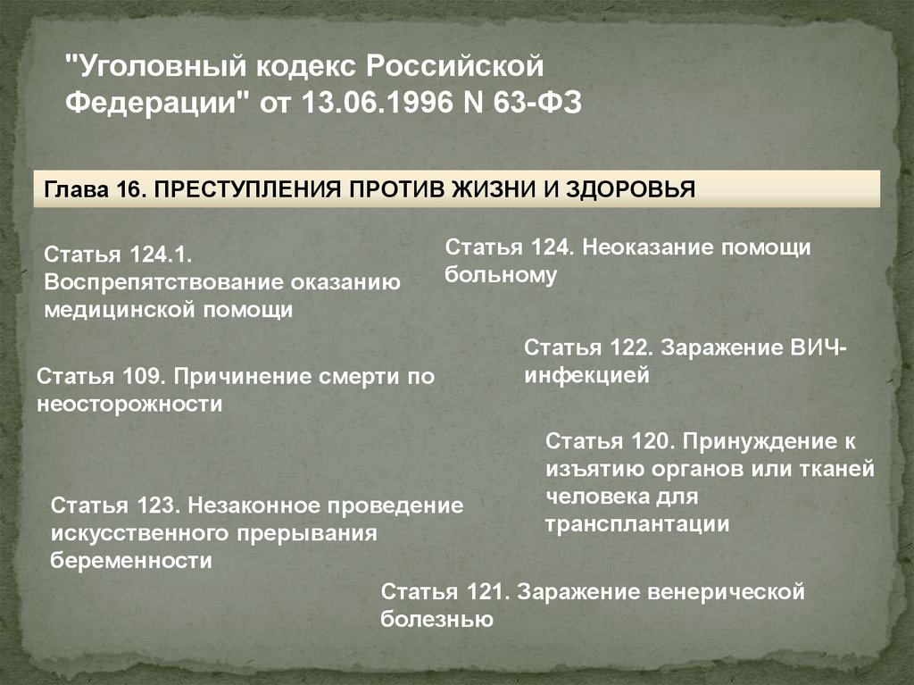Глава 16. ПРЕСТУПЛЕНИЯ ПРОТИВ ЖИЗНИ И ЗДОРОВЬЯ