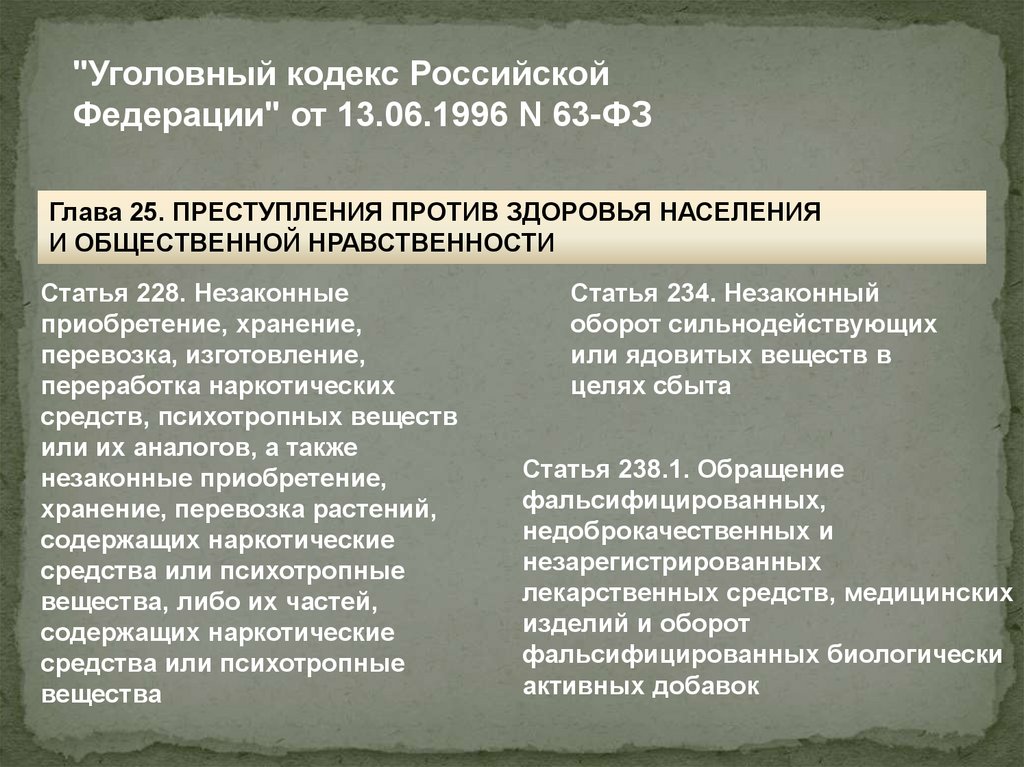 Глава 25. ПРЕСТУПЛЕНИЯ ПРОТИВ ЗДОРОВЬЯ НАСЕЛЕНИЯ